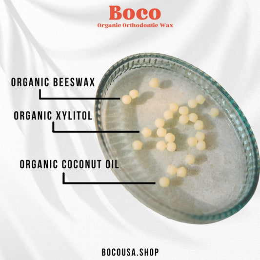 Created by a Mom and Dental Hygienist frustrated with traditional ortho wax, paraffin, which is made from coal, oil, and petroleum. Nope! I don’t want that in my kids’ mouth or yours! Boco Wax Buttons are made from organically sourced coconut oil and beeswax, and are infused with cavity fighting xylitol.