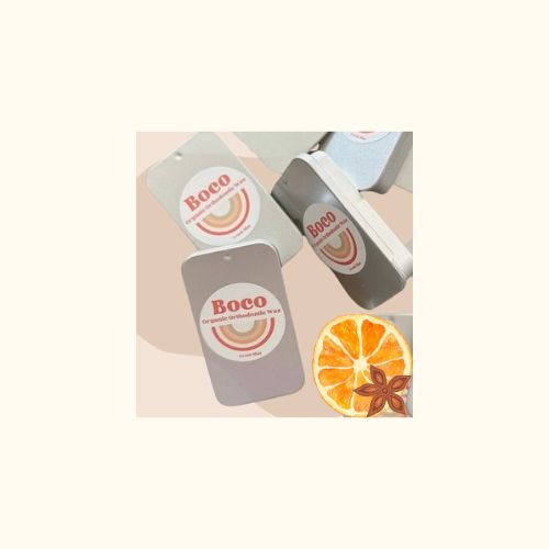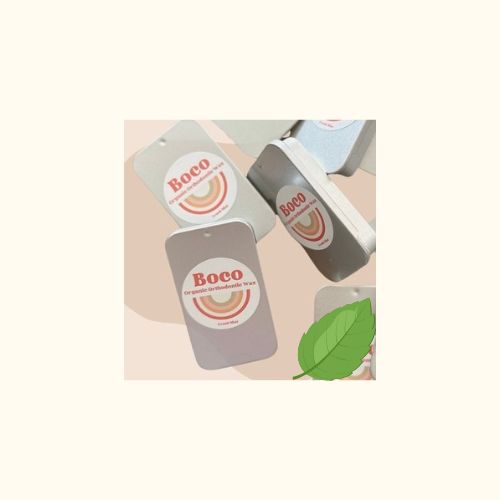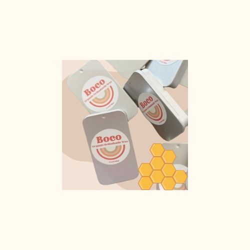 BOCO Wax is made from 100% organic ingredients, beeswax, coconut oil, and xylitol , with no petroleum or synthetic fillers.