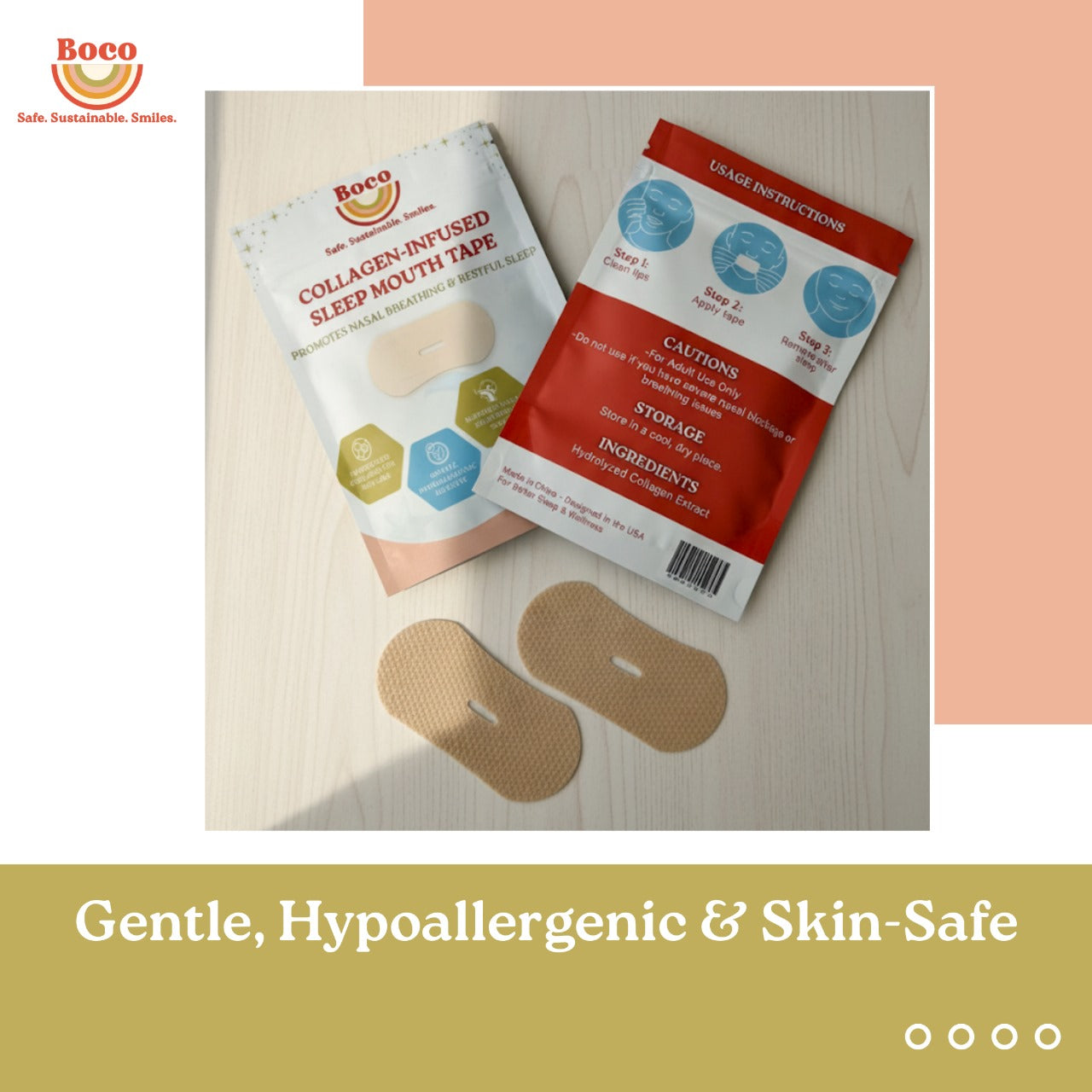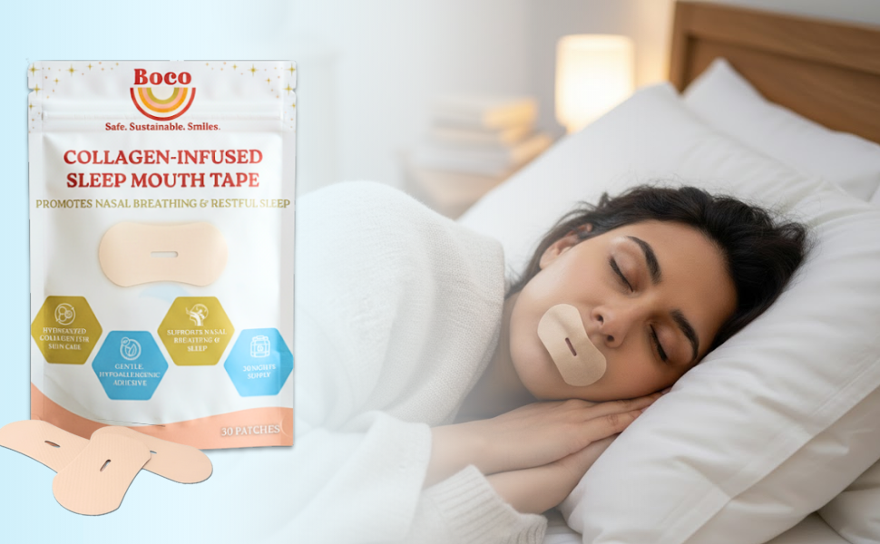 Boco Collagen-Infused Mouth Tape for Better Sleep – 30 Night Strips | Nasal Breathing & Skin Hydration | Hypoallergenic & Gentle
